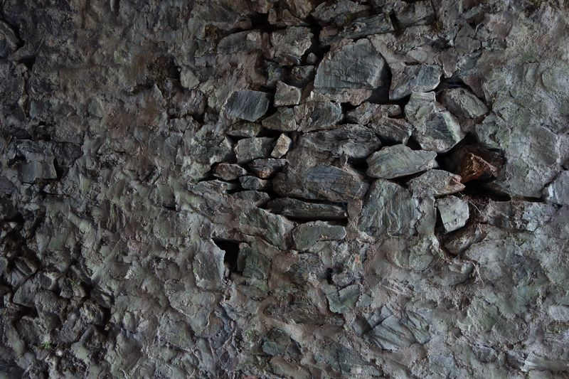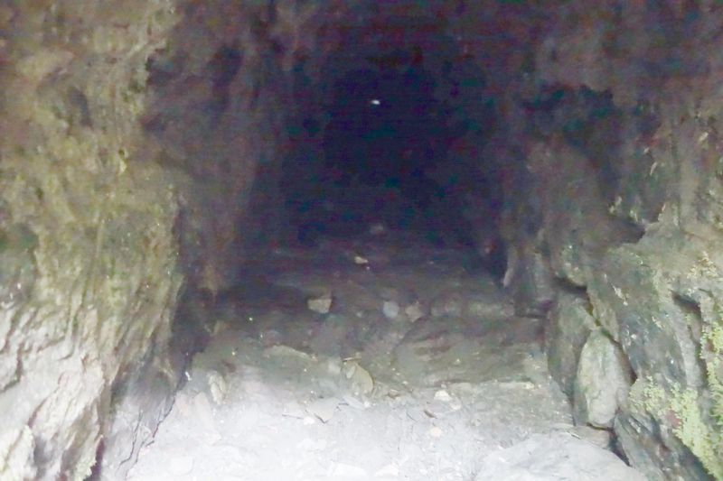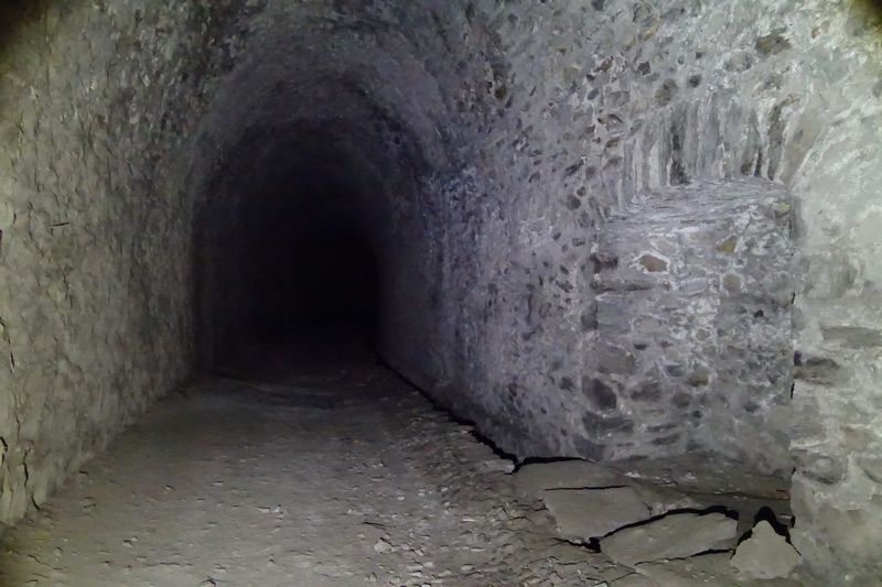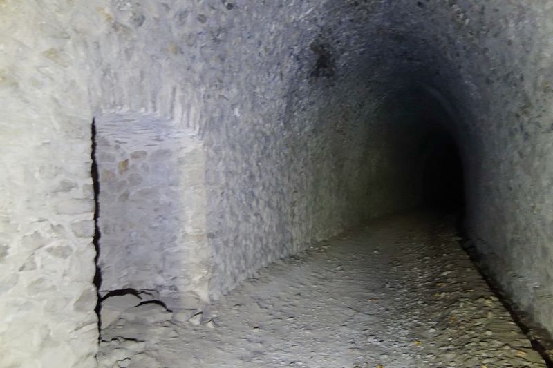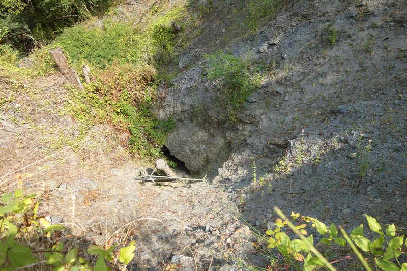 des pentes qui permettent malaisément la descente de la pierre taillée.