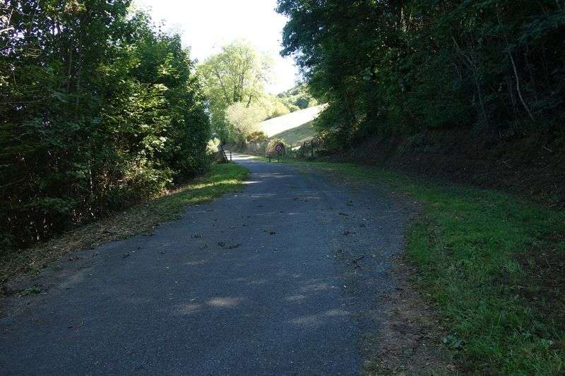 au terme d'un court itinéraire sécurisé, évitant, en face,