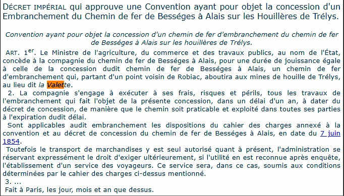 Convention ayant pour objet la concession d'un chemin de fer d'embranchement de Bessèges à Alais sur les houillères de Trélys.