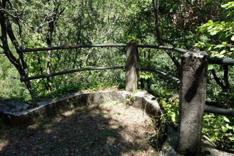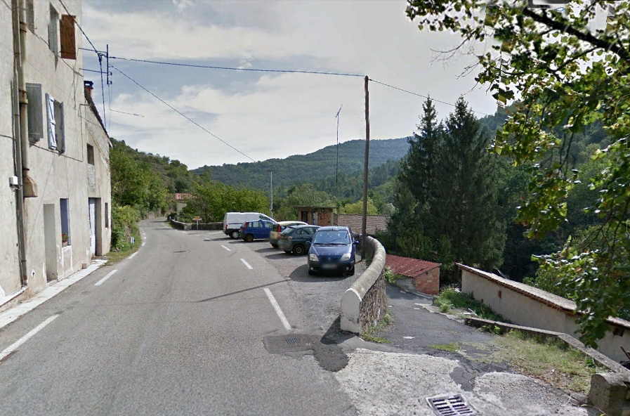 le garde-corps parvient en surplomb décalé des premiers toits du hameau de La Valette.