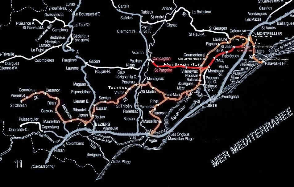 en provenance de Montpellier, via Montbazin-Gigean,