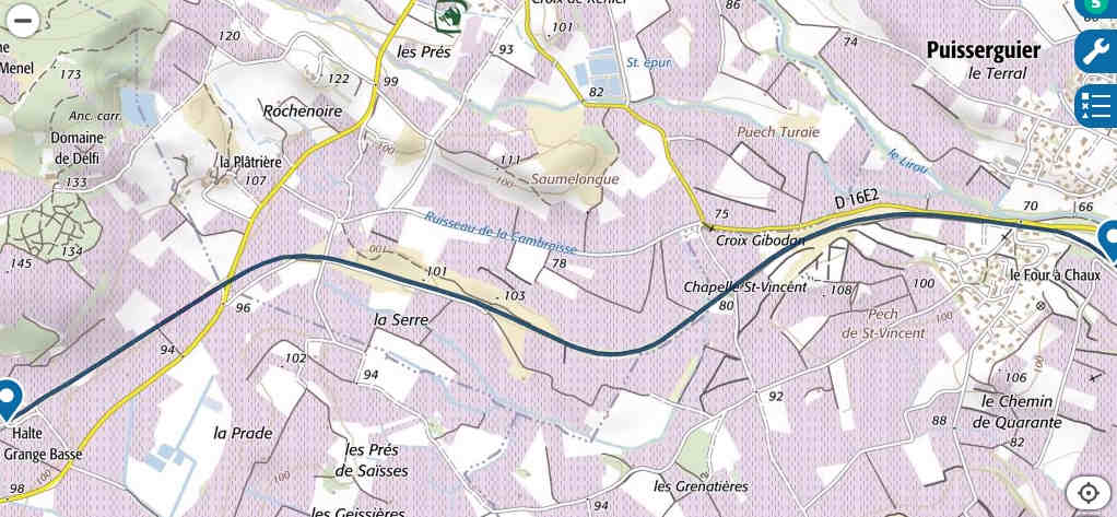 *Géoportail - ruisseau de la Mayral sur les plans SNCF