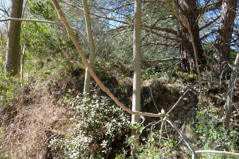 en remblai pour sauter un valat anonyme dont le lit discret marque la limite entre les
