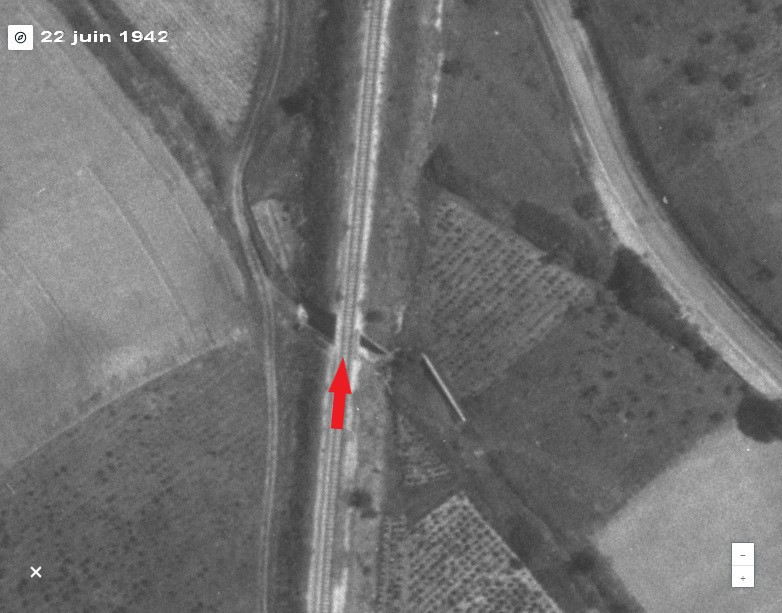 où elle enjambait le "chemin rural de Milhau à Saint-Césaire " sur un pont-rail métallique